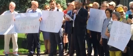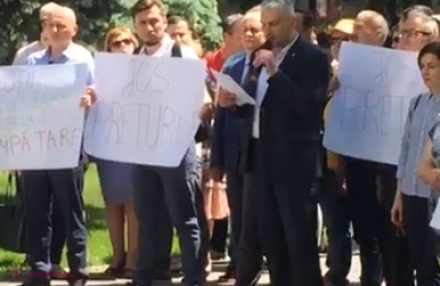 Reprezentanții și simpatizanții Blocului „ACUM” protestează în fața Guvernului împotriva ultimelor majorări de prețuri la cartofi și carburanți.