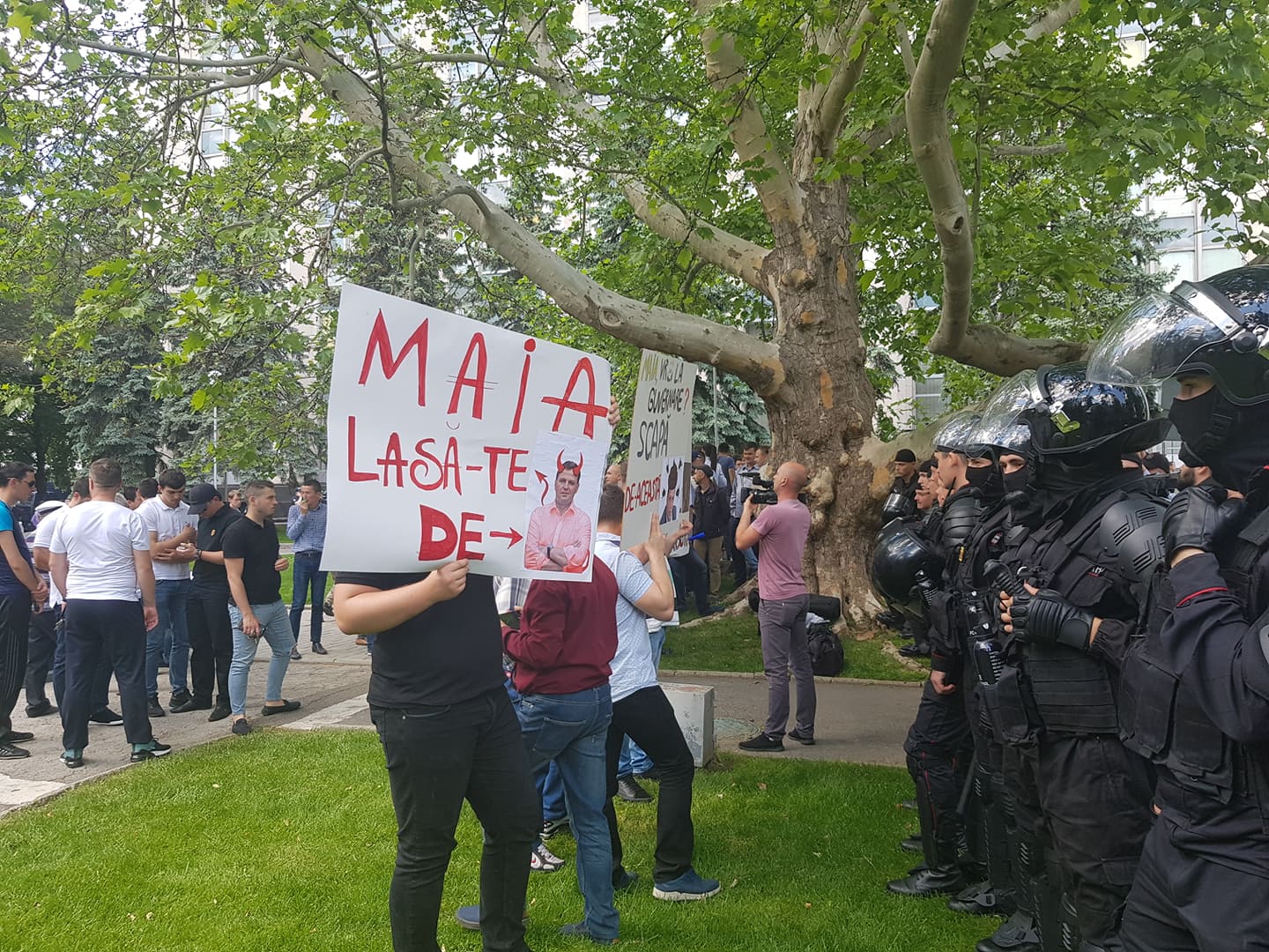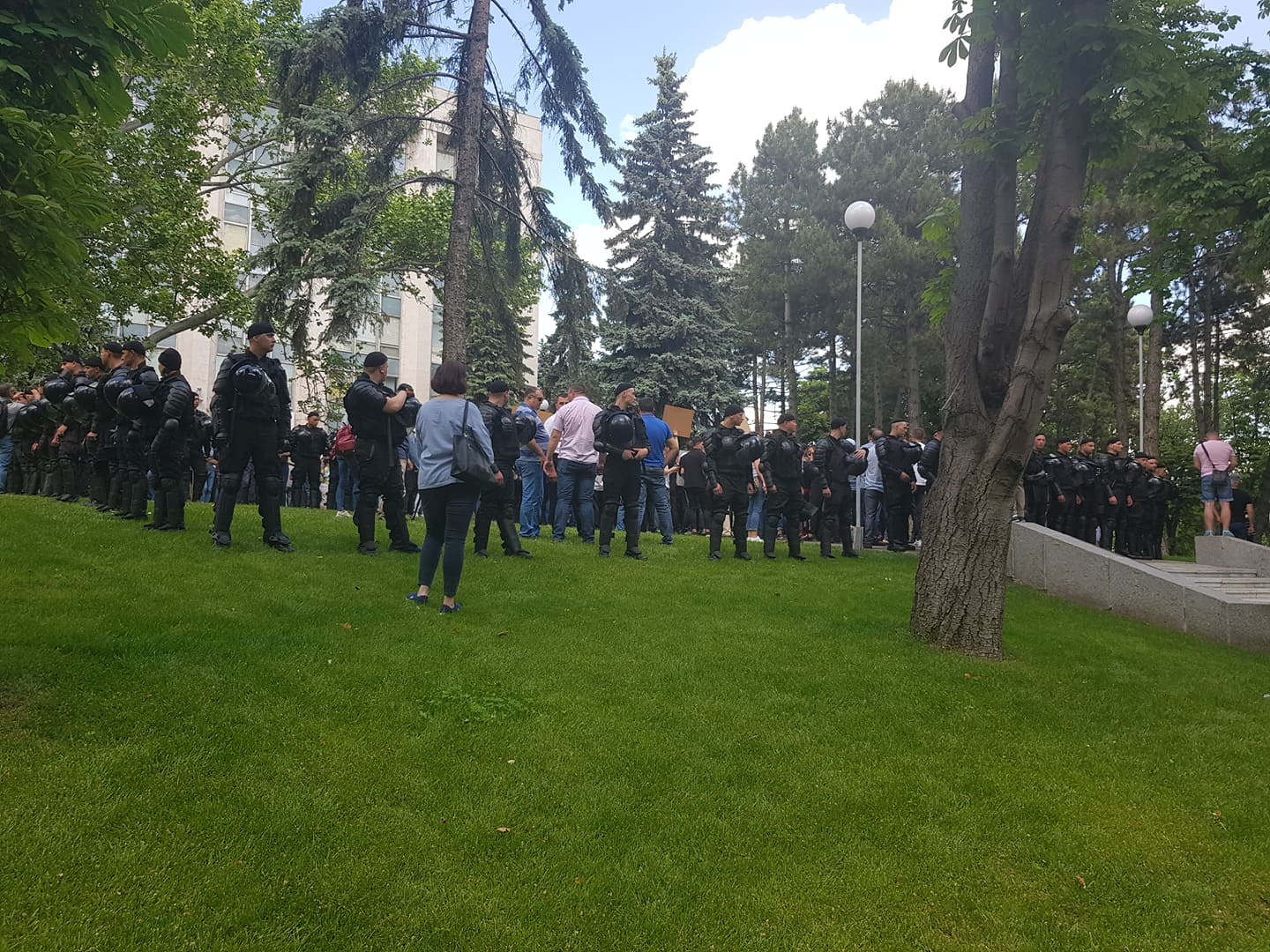 La fața locului a fost mobilizat un număr mare de polițiști, care despart cele două grupuri.