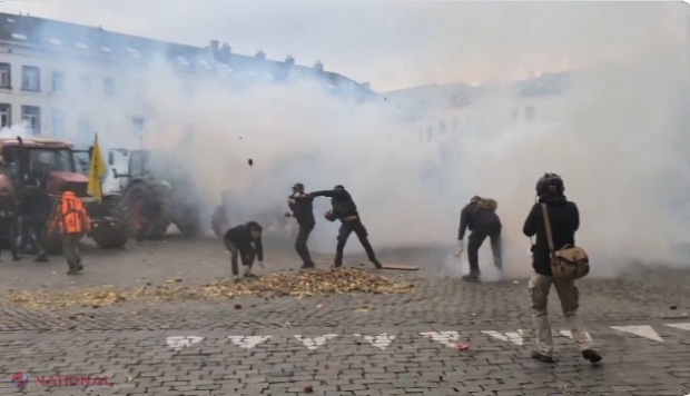 Protest în forță al fermierilor la Bruxelles: tunuri cu apă și gaze lacrimogene în plină reuniune a liderilor UE