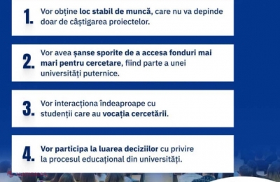 Ministerul Educației şi Cercetării a demarat o amplă reformă a învăţământului superior din R. Moldova, în urma căreia patru universităţi mari vor absorbi zeci de instituții de învățământ superior și de cercetare.