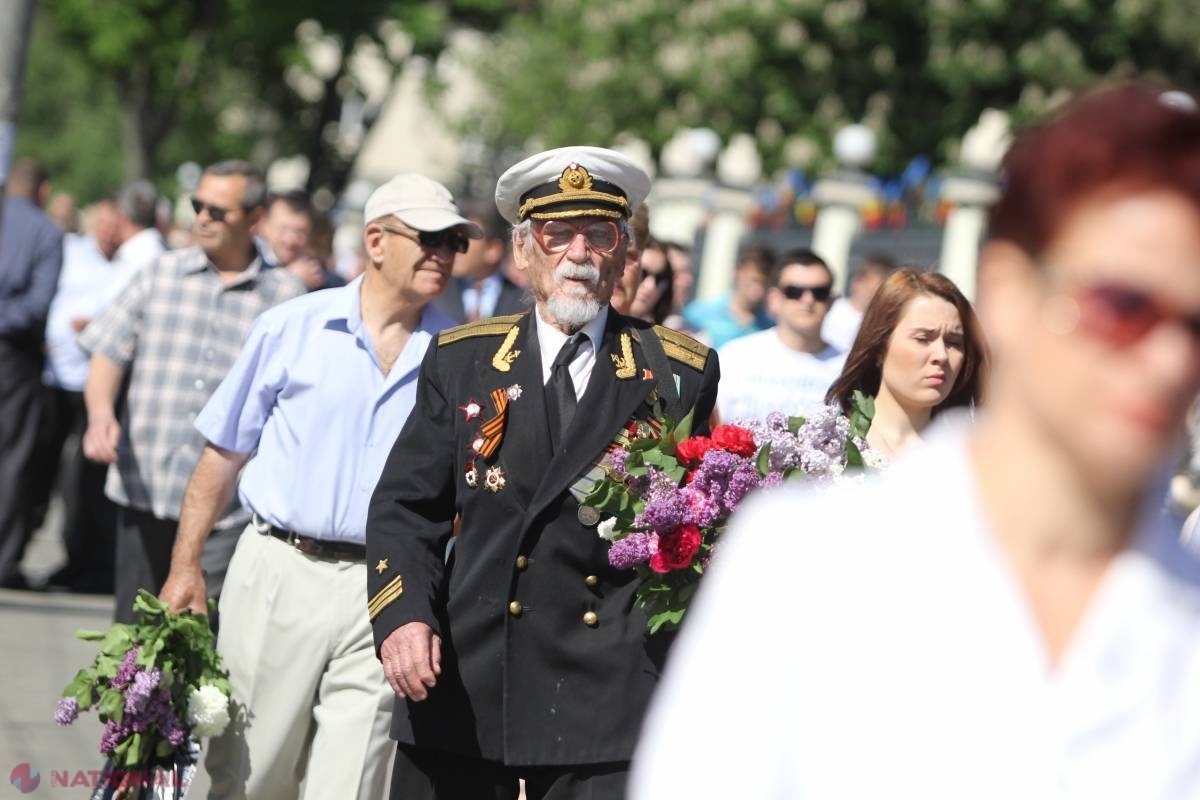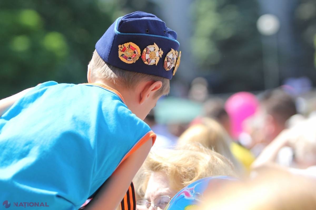 Fast și contramanifestații. Ziua Europei și Ziua victoriei. Roșu și însemne ale URSS. Tricolor și bicolor. Flori, veterani și cântece rusești.