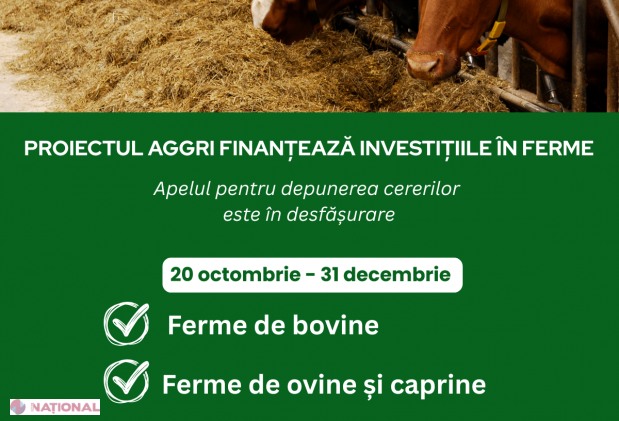 Fermierii din sectorul zootehnic pot accesa granturi de până la 1 milion USD pentru modernizarea fermelor prin proiectul AGGRI finanțat de Banca Mondială