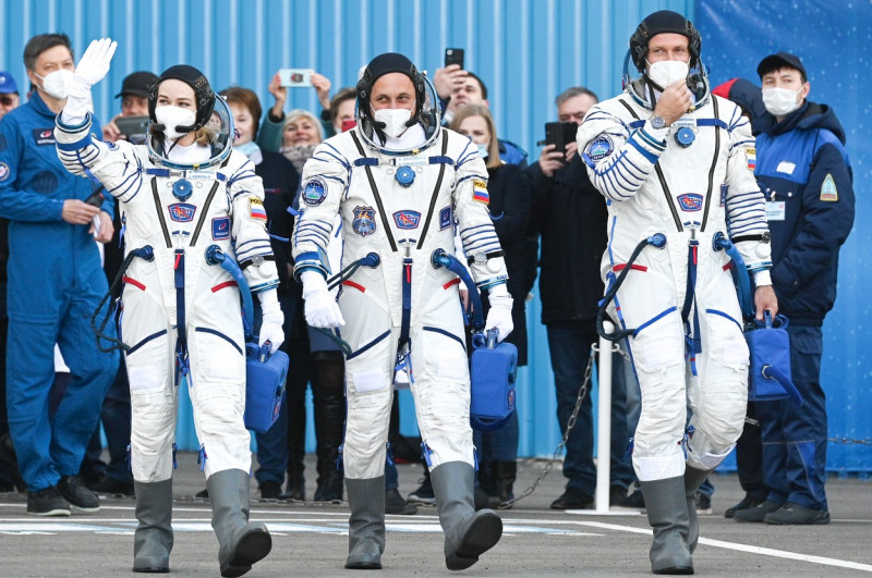 Actrița Yulia Peressild, în vârstă de 37 de ani, și regizorul Klim Chipenko, de 38 de ani, au fost acompaniați de cosmonautul veteran Anton Shkaplerov, cei trei decolând de pe cosmodromul din Baikonur, din Kazahstan.