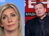 Propagandistul Vladimir Soloviov și purtătoarea de cuvânt a Ministerului rus de Externe, Ma...