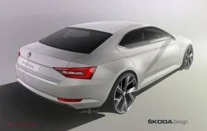 De această dată, constructorul din Mlada Boleslav a dezvăluit forma blocurilor optice din față, grila cu inserţii cromate, tăietura complicată a geamului farurilor, inspirată de cristalul de Boemia şi forma generală a caroseriei atunci când este privită de sus.