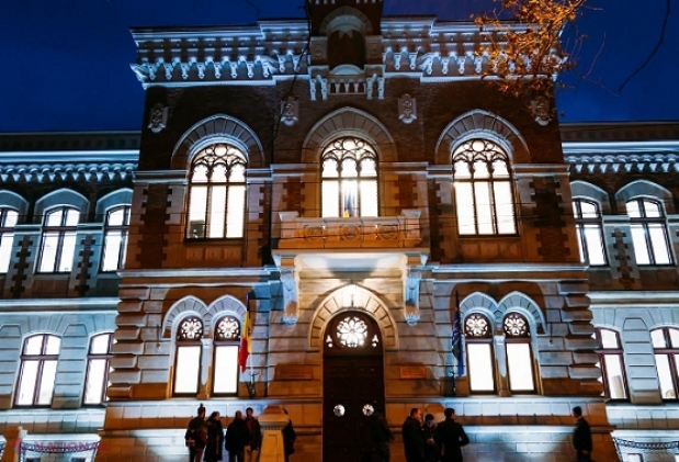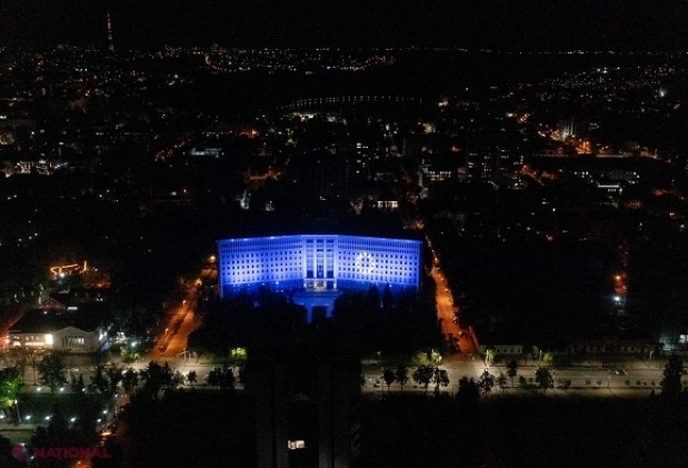 Clădirea Parlamentului Republicii Moldova a fost iluminată, marți-seară, în culorile Uni...