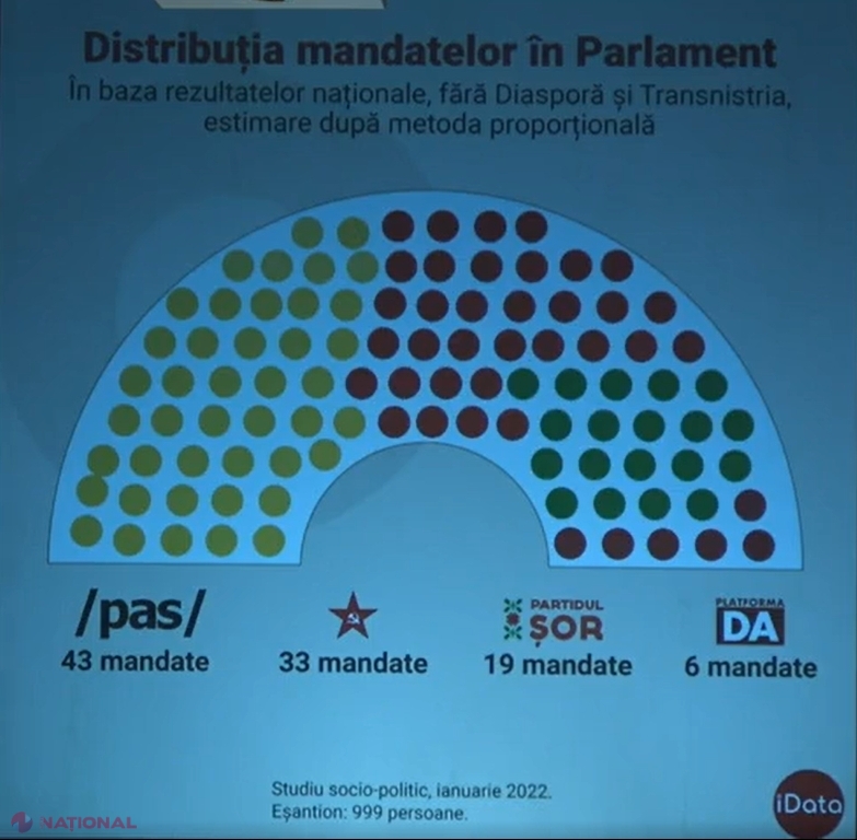 Sondajul a fost realizat pe un eșantion de 999 de persoane, iar distribuția mandatelor a fost luată în considerație în baza rezultatelor naționale, fără diasporă și Transnistria.