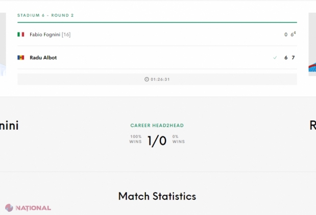 „The Machine” Albot merge ceas și la ATP Masters 1000 Indian Wells. Tenismanul nostru l-a eliminat pe rebelul Fabio Fognini