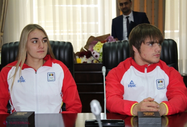Înotătoarea Tatiana Salcuțan și luptătorul Alexandrin Guțu, care și-au adjudecat medalii de a...