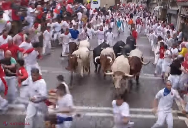 Străzile din Pamplona au trepidat sâmbătă sub ropotele copitelor taurilor și ale pașilor oam...