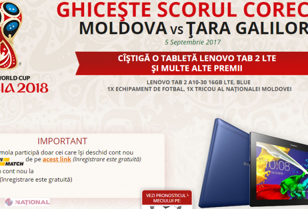 CONCURS: Câștigă o Tabletă Lenovo. Ghicește doar scorul la meciul Moldova vs. Țara Galilor