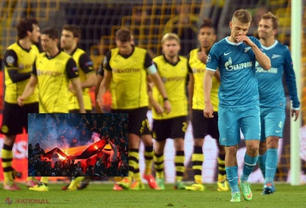 Fanii lui Zenit au ars un drapel al Germaniei în timpul meciului de aseară dintre Dortmund şi...