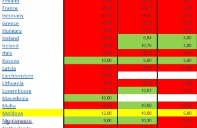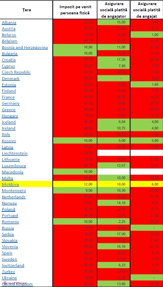 „Cum este taxa de muncă în R. Moldova față de alte țări de pe continentul nostru? În genere, la un nivel mai mic decât în majoritatea statelor europene”, susțin reprezentanții Asociației Oamenilor de Afaceri din Moldova, care au făcut o comparație între cotele de taxare din republica noastră și alte 42 de state din Europa.