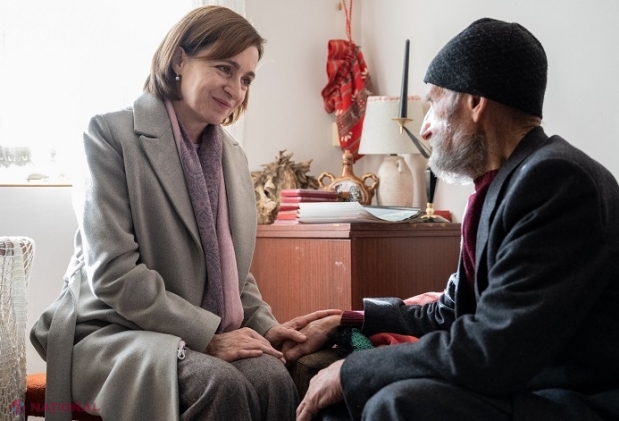 Președinta Maia Sandu l-a vizitat miercuri pe Constantin Cojocari, un bătrân în vârstă de 1...