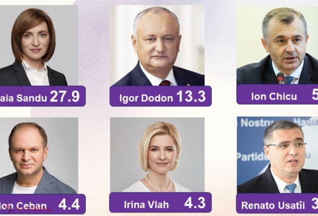 SONDAJ // Maia Sandu, FAVORITĂ pentru un nou mandat de președinte al R. Moldova. Principalul contracandidat, socialistul Dodon, a SCĂZUT sub 14%. Sprijinul pentru INTEGRAREA în UE este în creștere