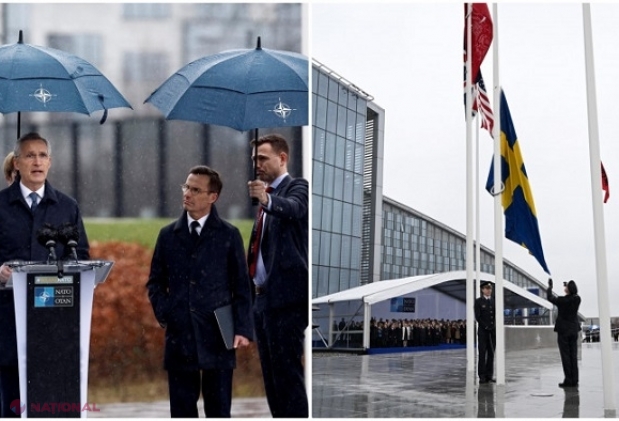 Steagul Suediei a fost arborat luni, 11 martie, la sediul NATO de la Bruxelles. Aderarea Sued...