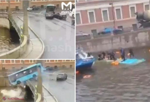 VIDEO // Momentul în care un autobuz cade într-un râu, în Sankt Petersburg. Patru persoane au murit şi alte şase sunt în stare gravă. Şoferul, reţinut