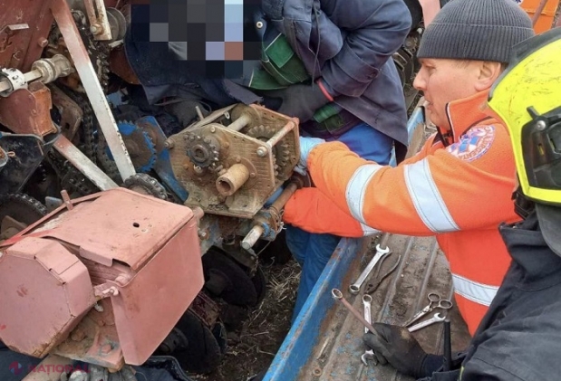 FOTO // Un bărbat de la Orhei, la un pas să fie „tocat” de fiarele unei semănătoare: A fost nevoie de dezmembrarea utilajului pentru a salva victima