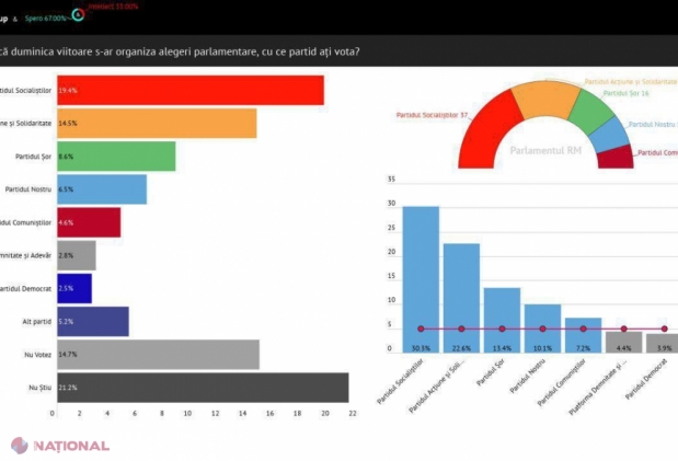 SONDAJ // Cinci partide ar accede în viitorul Parlament. PSRM ar avea același număr de deputați, PAS cât tot Blocul „ACUM”, iar Partidul „ȘOR” și-ar DUBLA numărul de mandate