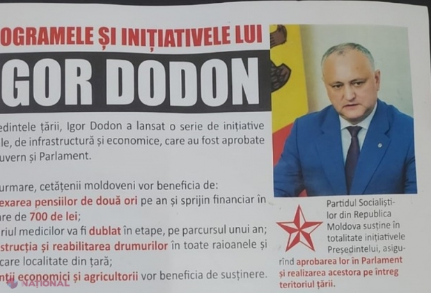 FOTO // Igor Dodon a FURAT STARTUL în campania electorală prezidențială? Reprezentanții PSRM au început deja să distribuie pliante cu „realizările” șefului statului. E vorba și de proiecte demarate încă de Plahotniuc