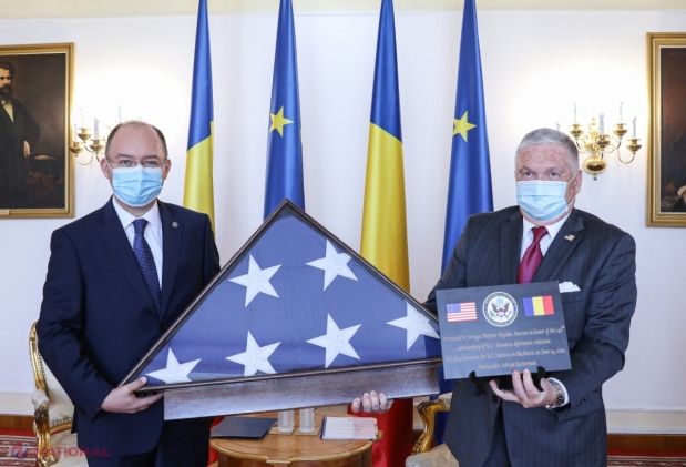 Gest de înaltă valoare simbolică: Ambsadorul Adrian Zuckerman i-a oferit ministrului de Externe drapelul SUA arborat la Ambasada din București