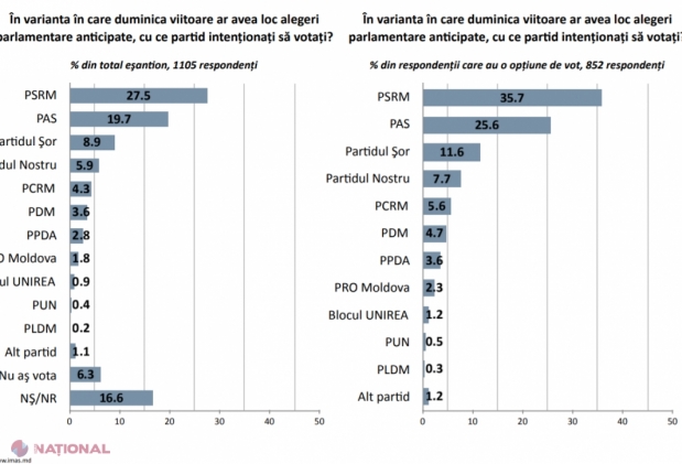 PSRM, PAS, Partidul „ȘOR”, Partidul Nostru și PCRM-ul lui Voronin ar accede în Parlament,...