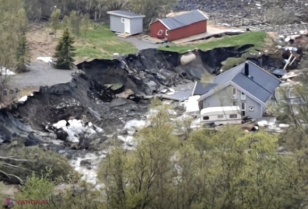 VIDEO // Momentul în care o parte dintr-un sat este ÎNGHIȚIT de ape din cauza unei alunecări de teren