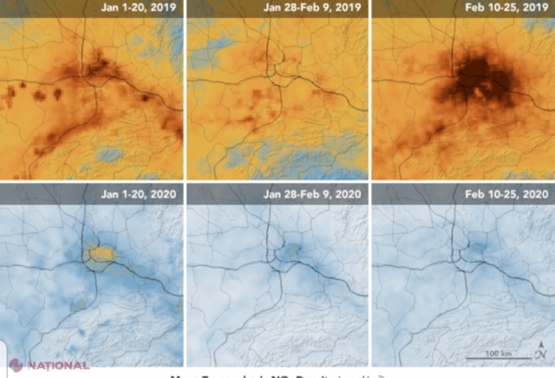Imaginile prin satelit au arătat o scădere dramatică a nivelului de poluare în China, ceea ce ...