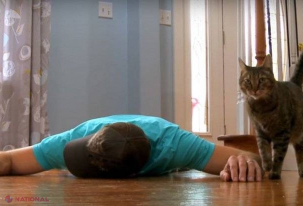 VIDEO // Stăpânul s-a prăbușit „mort” în fața pisicii. Cum a procedat felina