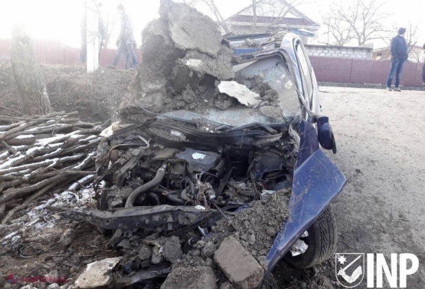 FOTO // Un șofer urmărit de Poliție pentru că circula cu viteză excesivă prin Cimișlia și-a sfârșit cursa intrând cu mașina într-o casă