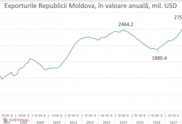 După criza din 2014, exporturile R. Moldova au scăzut, pe parcursul a doi ani, cu 25% sau 5...