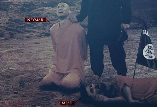 Neymar, în lacrimi şi ameninţat de un terorist, Messi zace pe pământ. Galerie FOTO terifiantă cu ultimele ameninţări ale Statului Islamic