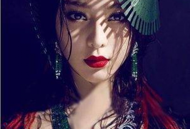 Purtând un top alb scurt şi mulat, cu trupul acoperit de tatuaje temporare şi mângâind din c...