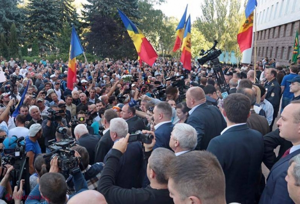 Protestatarii conduși de socialistul Igor Dodon și liderul „Partidului Nostru”, Renato Us...
