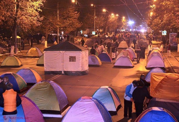 PROVOCARE? Usatîi și Dodon și-au instalat corturi pe carosabil. Circulație BLOCATĂ pe bulevardul Ștefan cel Mare