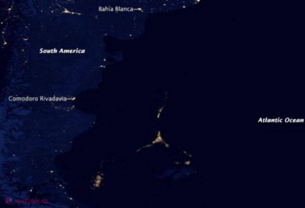 Apariţia luminilor puternice în largul Oceanului Atlantic, în apropierea coastei Argentinei,...