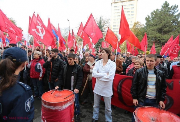 Câteva sute de simpatizanți ai Partidului Comuniștilor au protestat și astăzi în fața Pala...