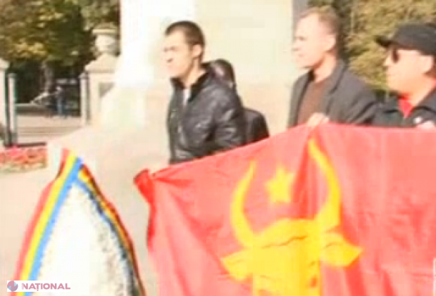 Câțiva simpatizanți ai Partidului Comuniștilor au protestat astăzi în fața monumentului lui Ș...