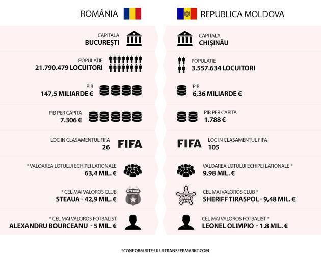 În contextul în care România are probleme serioase în a promova tineri fotbalişti, naţionala Republicii Moldova este într-o continuă ascensiune. Fotbalul vecinilor noştri de peste Prut a crescut în valoare în ultimii ani, moldovenii lăudându-se recent cu primul lor fotbalist care a marcat în Serie A: Artur Ioniţă a înscris pentru Hellas Verona în meciul cu Torino. Acum, în septembrie 2014, o comparaţie între fotbalul din România şi cel din Republica Moldova este încă destul de clar în favoarea noastră. Totuşi, viitorul moldovenilor pare construit pe baze mai solide, iar următorii ani pot să ne aducă surpize atât la nivelul echipelor naţionale, cât şi la cele de club, acolo unde Dacia Chişinău sau Şeriff Tiraspol investesc masiv pentru a pătrunde cu succes în cupele europene.
