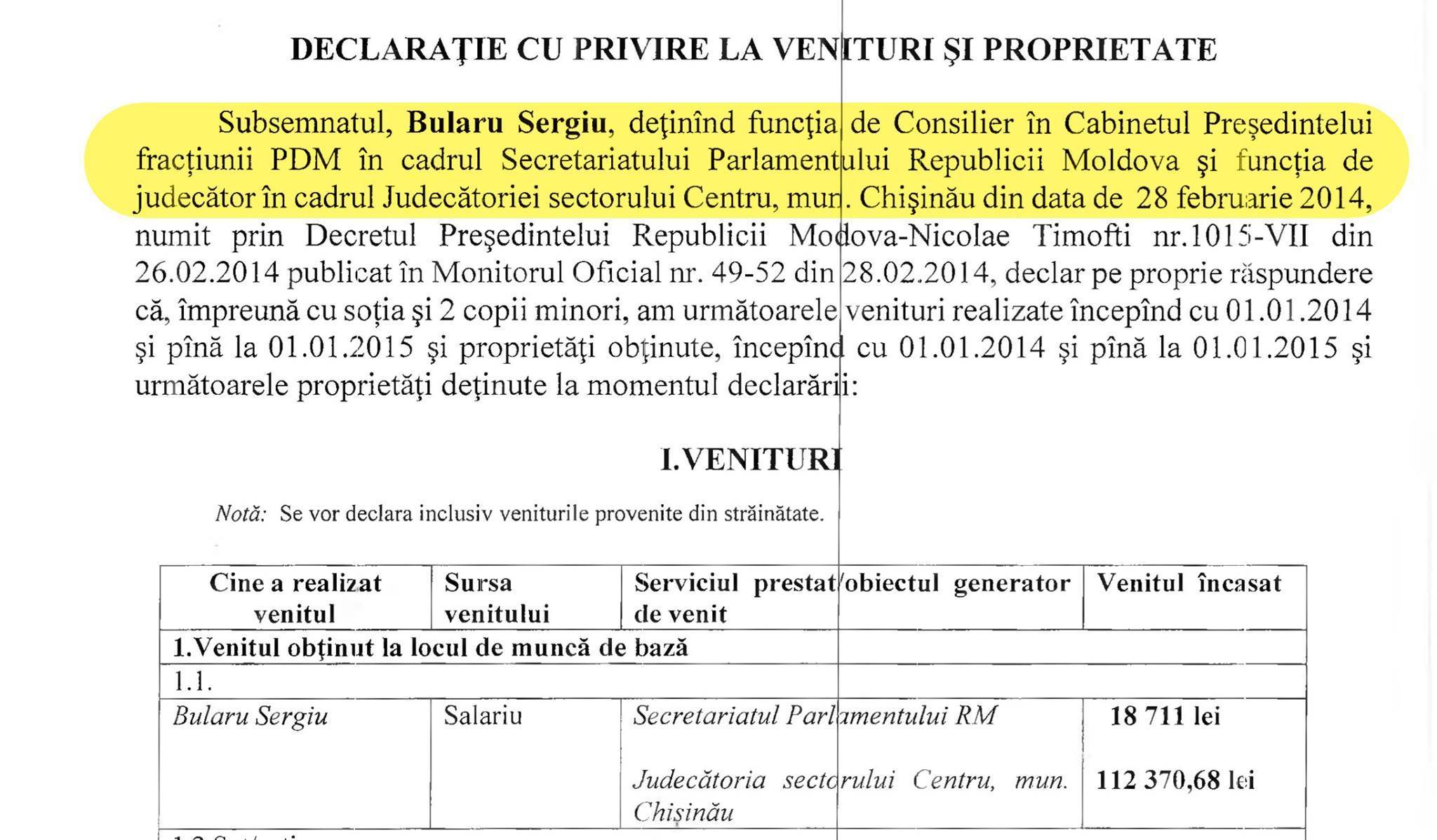 Sergiu Bularu a fost numit în funcția de judecător anul trecut, iar anterior, în perioada anilor 2011 – 2014, a activat în calitate de consilier în cabinetul președintelui fracțiunii parlamentare a Partidului Democrat din Republica Moldova, scrie Pro TV.