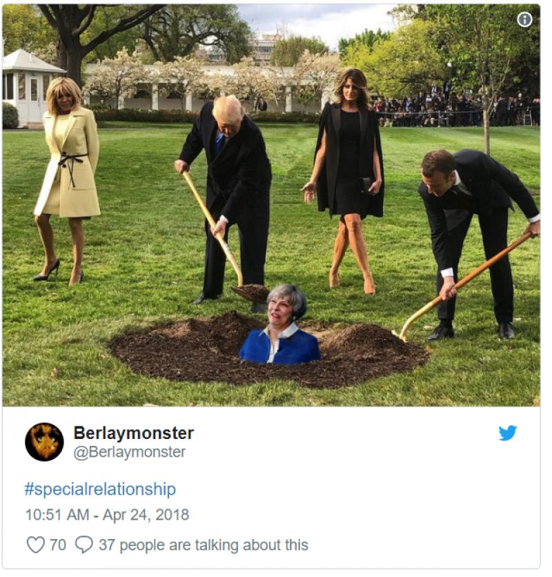 sursa: google.ro Vizita președintelui Emmanuel Macron în SUA a început cu un gest simbolic. Emmanuel Macron și Donald Trump au plantat împreună un stejar pe peluza Casei Albe, însă imaginea surprinsă în timpul acestui moment a devenit subiectul preferat de glumă al internauților.