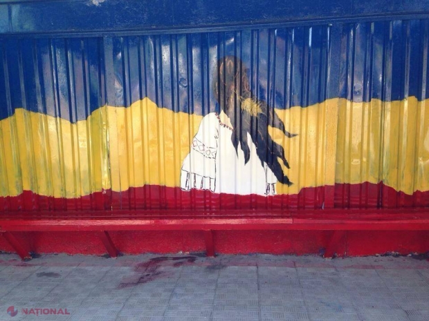 Tricolor și elemente naționale, pictate pe o STAȚIE din Ialoveni. Motivul este LĂUDABIL