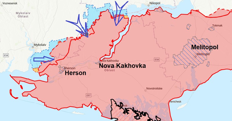 În orașul Nova Kakhovka, din Herson sirenele se aud continuu, locuitorii sunt în adăposturi și a fost anunțată evacuarea, transmite un oficial local citat de TASS. Potrivit acestuia, Forțele Armate ale Ucrainei bombardează orașul, inclusiv cu sisteme HIMARS. Serghei Aksionov, șeful regiunii anexate Crimeea, a numit false informațiile despre ofensiva Forțelor Armate ale Ucrainei în sud, potrivit TASS.