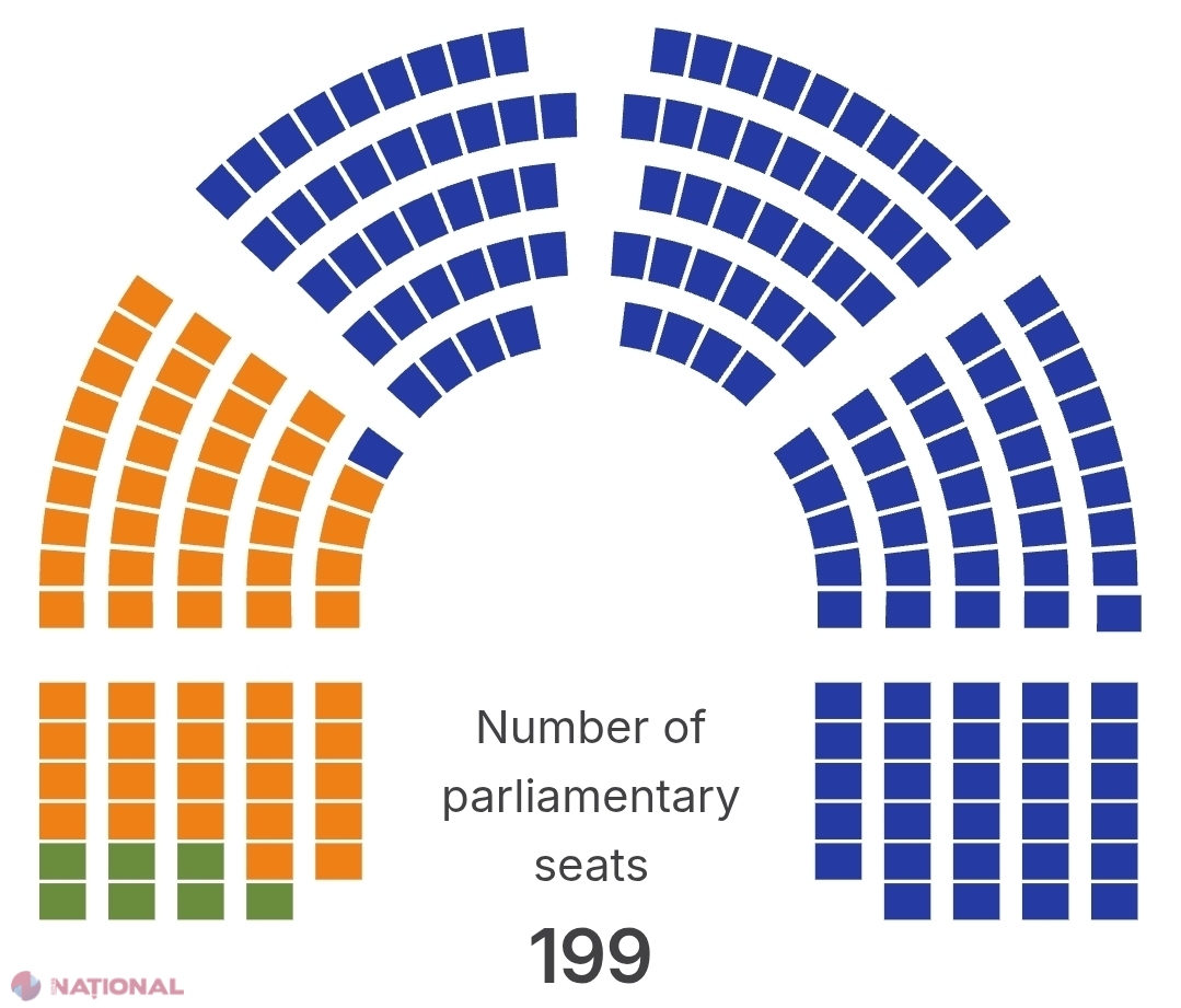 Conform datelor actualizate, proiecția mandatelor în Parlamentul de 199 de locuri arată astfel:
