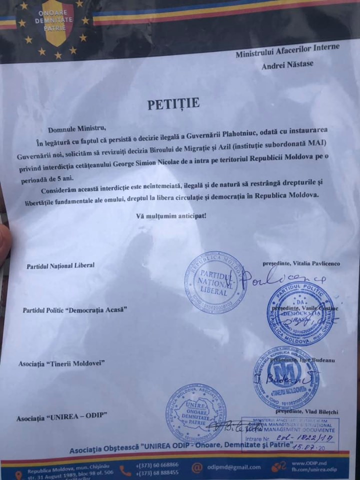 „Considerăm această interdicție neîntemeiată, ilegală și de natură să restrângă drepturile și libertățile fundamentale ale omului și dreptul la libera circulație în Republica Moldova. În 2018, am fost martorul reținerii lui George Simion. A fost interzis în Republica Moldova fără a exista un motiv argumentat și concret”, a declarat Vlad Bilețchi.