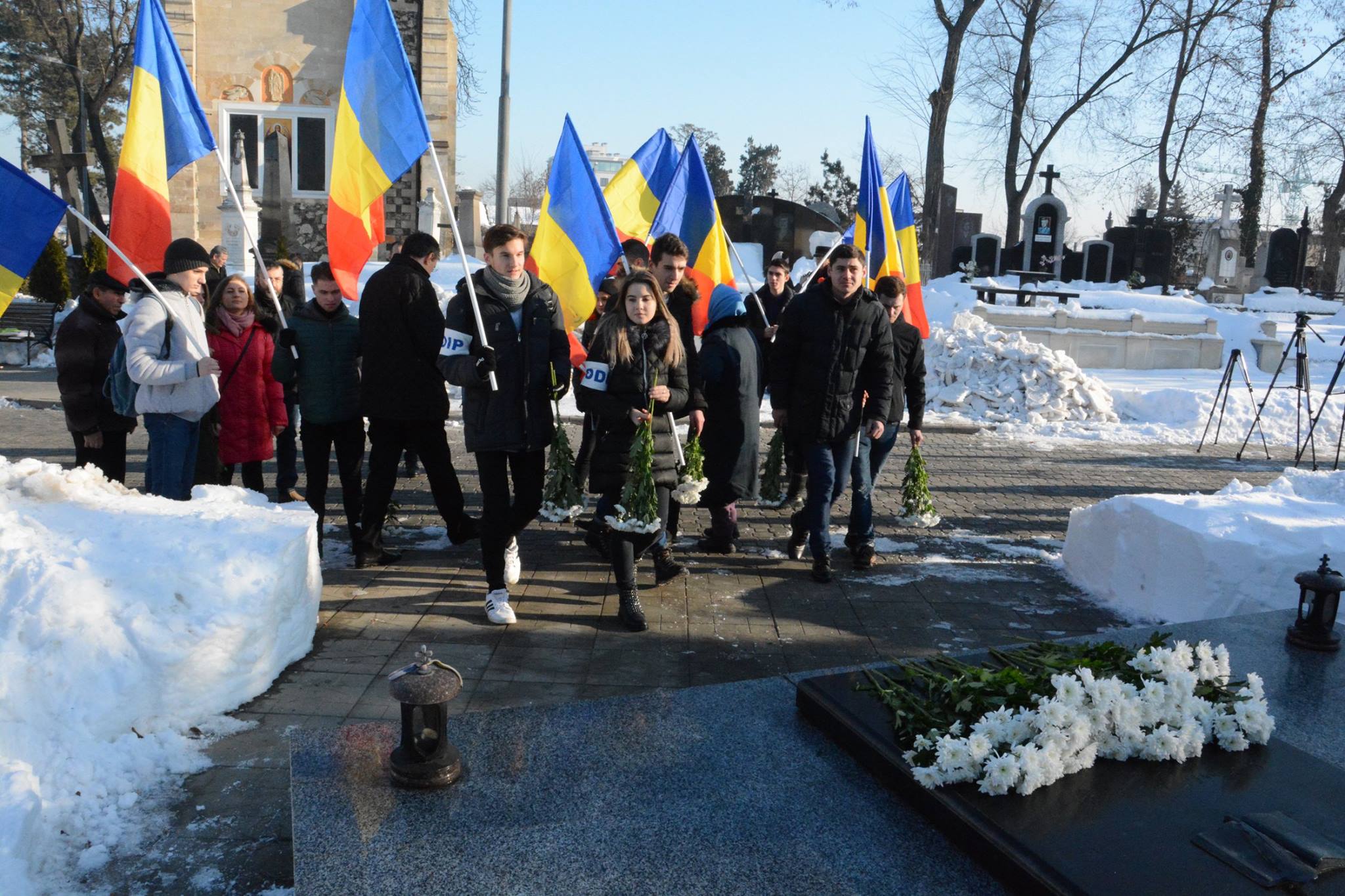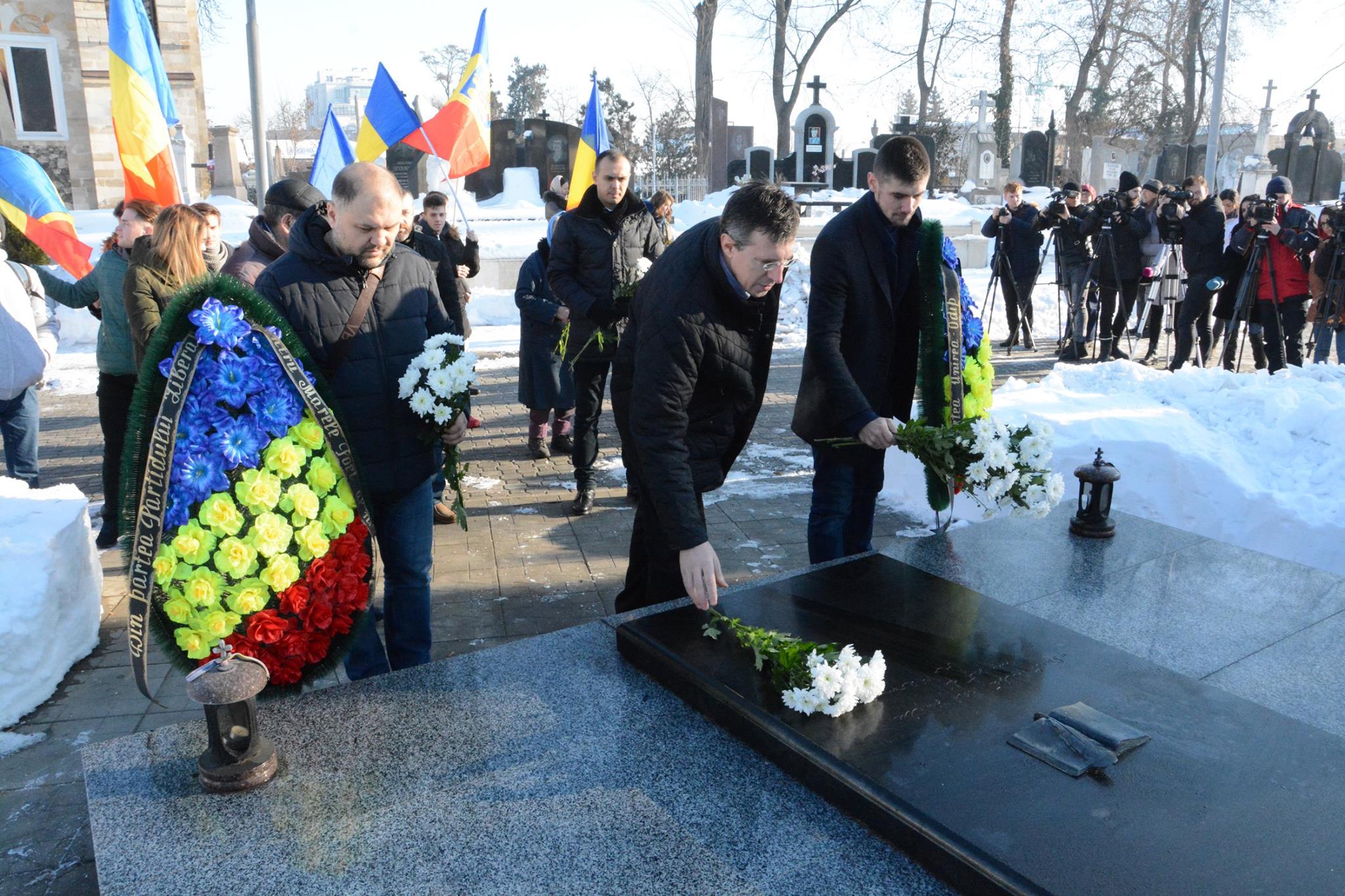 Tinerii au depus flori la mormântul poetului de la Cimitirul Central din capitală și au ținut un minut de reculegere în memoria acestuia.