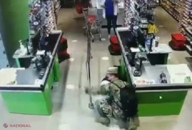 VIDEO // Momentul în care unui bărbat i se face rău într-un magazin de la Botanica și cade lovindu-se puternic cu capul de o bară: Un militar sare să-i acorde ajutor