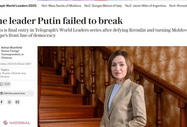 Maia Sandu, simbol al rezistenței democratice în fața presiunilor Kremlinului, onorată de The Telegraph ca Liderul Mondial al Anului