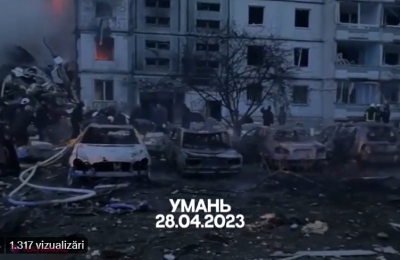 În oraşul Uman din centrul ţării, trei persoane au fost ucise şi opt rănite după ce o rachetă a lovit un bloc de locuinţe care a luat foc, a declarat Ihor Tabureţ, şeful administraţiei militare din zonă.