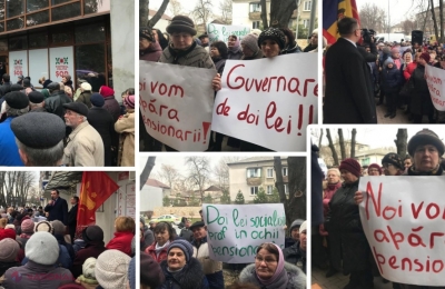 Peste șase mii de persoane au protestat în această dimineață împotriva guvernării socialiste. Protestatarii au criticat atitudinea actualei guvernări, în contextul ajustării pensiilor, pe care oamenii le califică „antisociale”. Acțiunile de protest, desfășurate în toate orașele din republică, la sediile regionale ale PSRM, inclusiv la cele din Chișinău și Bălți, au fost sprijinite de Partidul „ȘOR”, formațiune care propune și o inițiativă legislativă care să asigure un trai decent pentru pensionari.